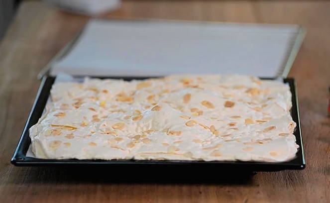 Запікання меренги також було своєрідним випробуванням. Я знала, що треба бути дуже обережною, адже можна легко перетримати її, і тоді вона стане занадто сухою або потріскається. Але цього разу все йшло ідеально. Після випікання меренга вийшла ніжною, трохи хрусткою зовні, але м'якою і еластичною всередині. Саме такою, якою вона має бути для ідеального рулету.