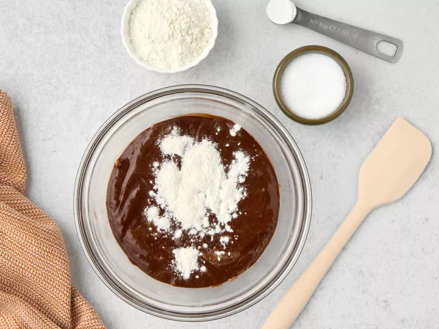 5.Всипте борошно, сіль і розпушувач. Замісіть однорідне тісто.