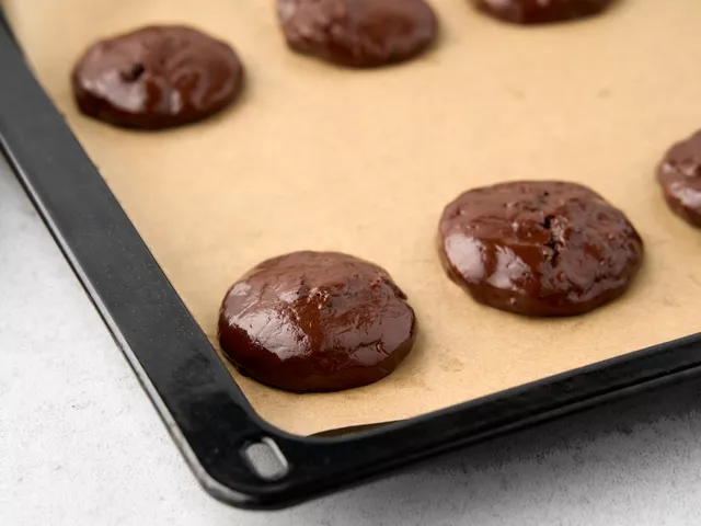 7.Розділіть тісто на 8 рівних частин. З кожної частини сформуйте невелику кульку і зробіть із неї коржик завтовшки 0,5 см. Застеліть деко пергаментом. Викладіть заготовки печива на деко. Відправте їх у розігріту до 180 °C духовку на 15 хвилин. Перед подачею дайте охолонути.