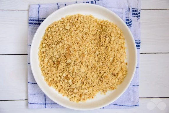 Змастіть торт зверху та присипте підготовленою крихтою.